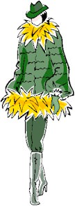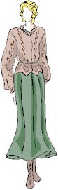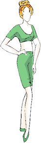 Describe la ropa que lleva puesto. Use la contracción de "She is" (She's) como en el ejemplo.