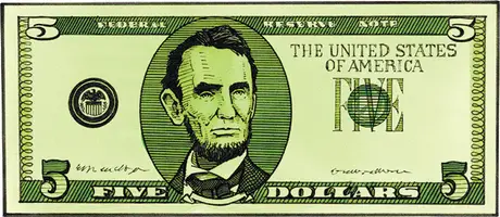 (Tengo un billete de cinco dólares en mi bolsillo.)