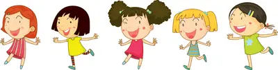 ► Five girls played together in the park.