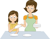 (Ella ayudó a su madre a poner los platos sobre la mesa.)