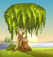 (El oso está descansando debajo de un árbol.)